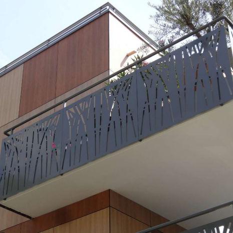 Tôle aluminium pleine, perforée, découpée...Les panneaux de remplissage se dessinent au motif de votre choix.