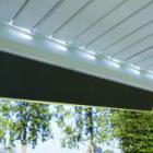 Le toit de la pergola B-128 est pourvu d’une toile solidement tendue basée sur la technologie de l’écran ZIP. Par conséquent, elle offre une parfaite protection contre le soleil et la pluie.