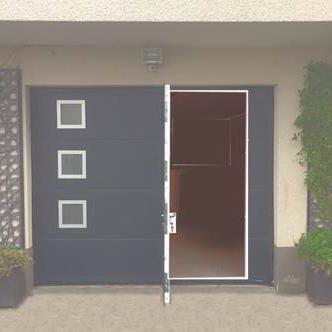 Ses panneaux permettent de grandes largeurs d'ouverture et la possibilité d'intégrer un portillon.