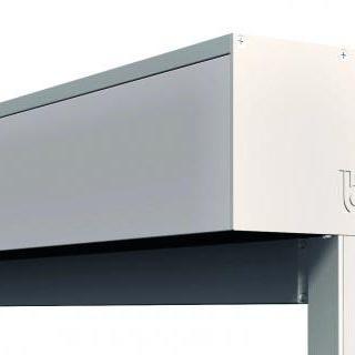 La toile tendue peut se fixer directement au mur ou sur un mât. Le ressort intégré assure une tension optimale de la toile. L’élégant boîtier protégeant la toile est fabriqué en aluminium extrudé thermolaqué.